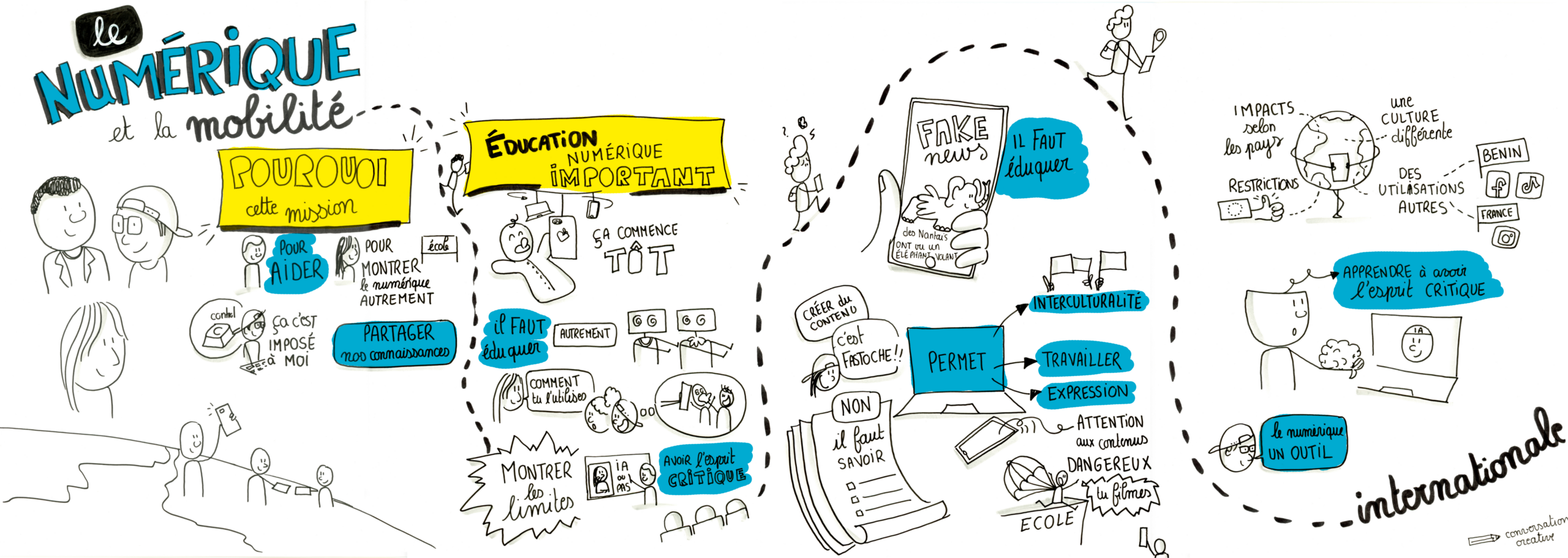 Lors des rencontres régionales de la mobilité internationale 2025, les échanges ont été synthétisé dans le livret RRMI ci-dessous et sous forme de dessin en facilitation graphique aussi téléchargeable en PDF.